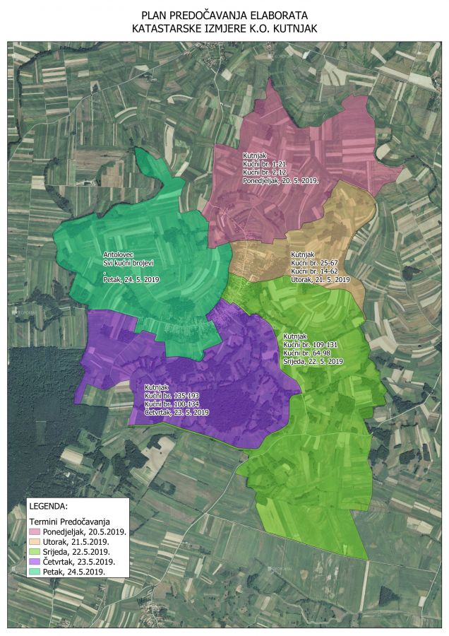 Predočavanje podataka izmjere provoditi će djelatnici tvrtke GEOPROJEKT d.o.o. iz Zagreba, prema rasporedu na pratećoj karti